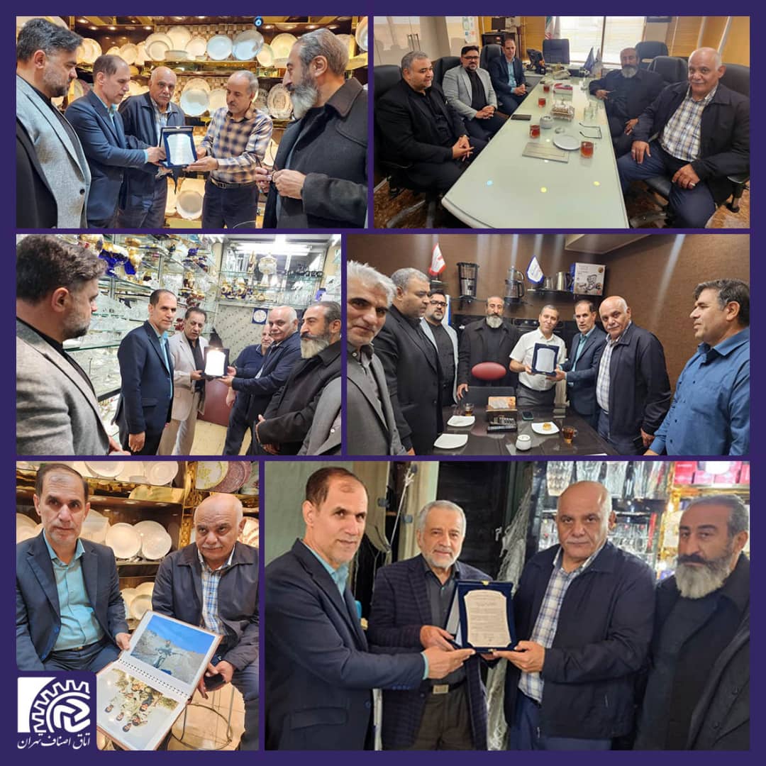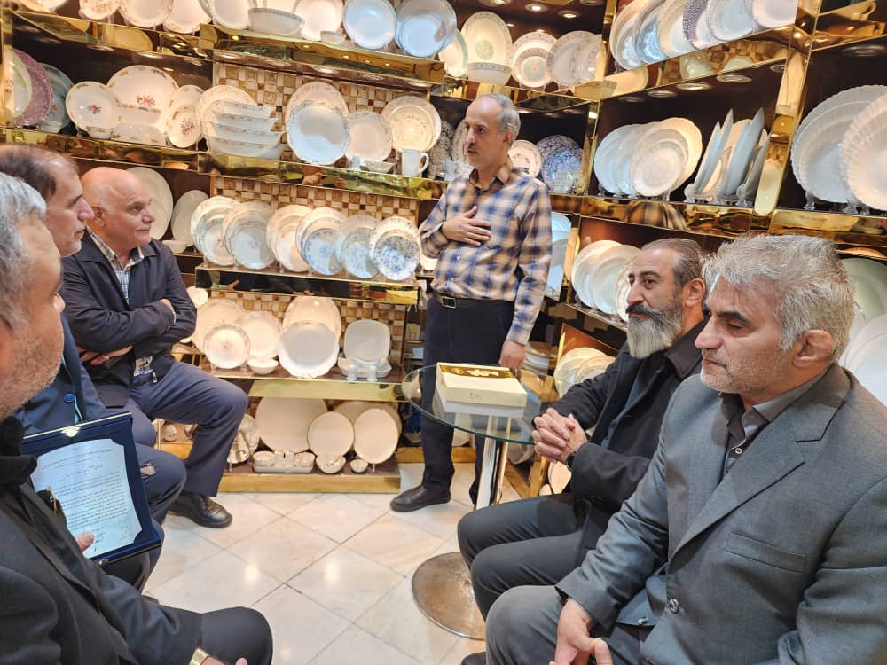 روز چهارشنبه 14 آبانماه 1404 آقاي غلامرضا صفرنژاد و هيات مديره اتحاديه صنف فروشندگان چيني و بلور تهران در همراهي با سرهنگ نعمت کاکاوند رئيس سازمان بسيج اصناف تهران، با حضور در بازار بزرگ تهران (تيمچه حاجبالدوله) و بازار چيني و بلور منطقه شوش، به تجليل از خانواده معظم شهداي اين صنف پرداختند.